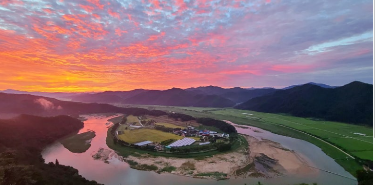 예천의 대표적인 포토존으로 손꼽히는 '회룡포 전망대'는 연인들이 함께 인생샷을 남기기에 최적의 장소입니다. 낙동강이 S자 모양으로 휘돌아 흐르는 장관은 사진 한 장에 자연의 아름다움과 감성을 동시에 담을 수 있도록 해줍니다. 특히 봄철에는 전망대 주변으로 핀 야생화와 초록빛 나뭇잎들이 어우러져 생동감 있는 풍경을 완성합니다.